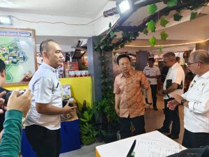 Marindo dan Agnesia Marindo didampingi sejumlah kepala perangkat daerah terkait juga berkeliling Anjungan Kabupaten Pringsewu dan melihat dari dekat setiap stan yang ada, baik di lantai atas maupun bawah.