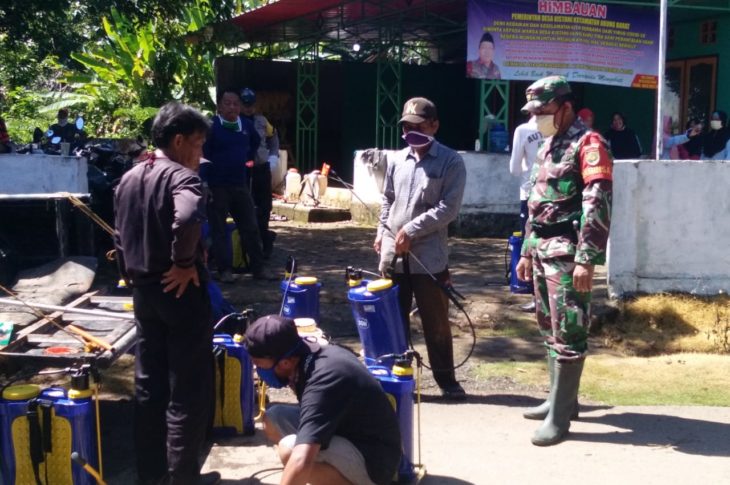 Kades dan Babinsa Lakukan Penyemprotan Disinfektan